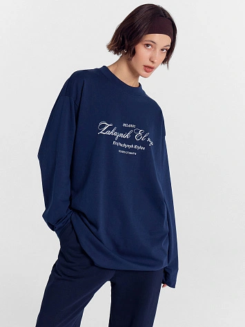 Лонгслив женский синий из коллекции "zakaзnik el’nya / заказник ельня"