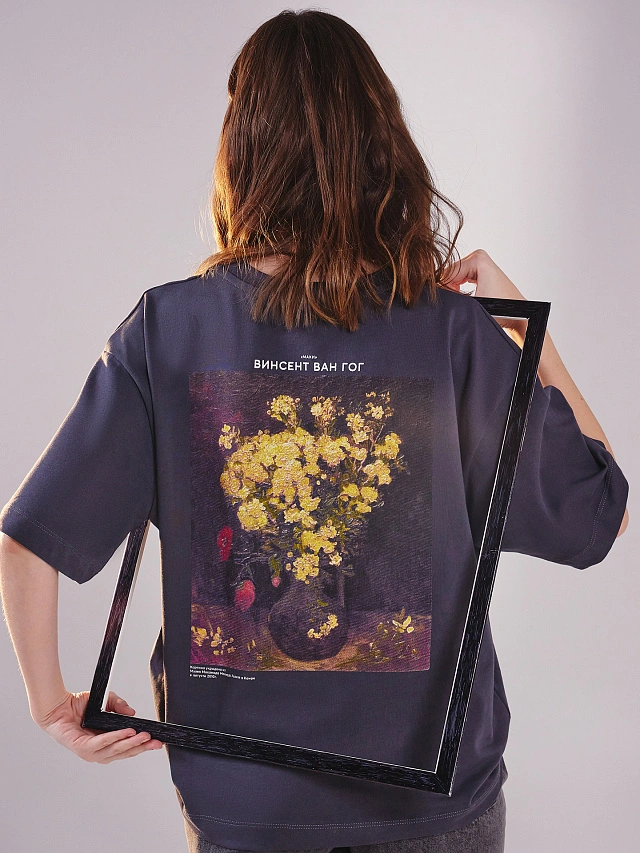 Футболка женская серая с принтом "винсент ван гог, маки"