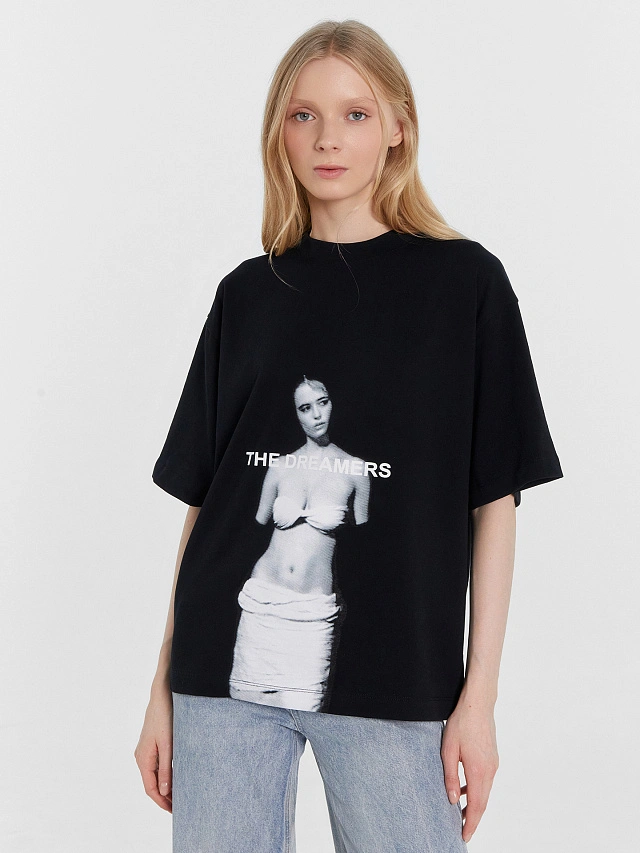 Очень крутая! Свободная, ткань приятная, плотная достаточно. Понравился принт с телевизором и цвет нежнейший розовы. После стирки принт на месте, швы тоже