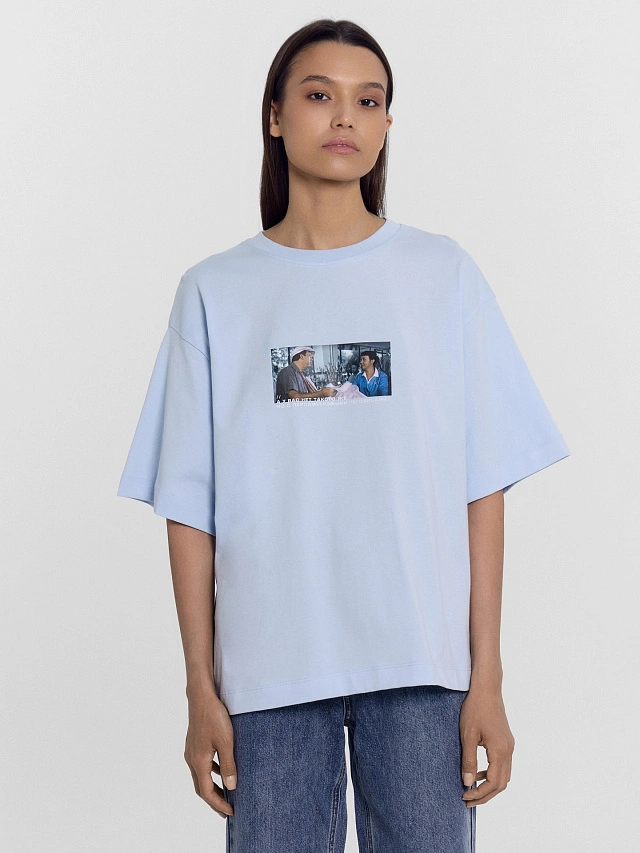 Голубая футболка с надписью очень понравилась! Отличное качество,приятная текстура ткани и конечно голубой цвет! Спасибо