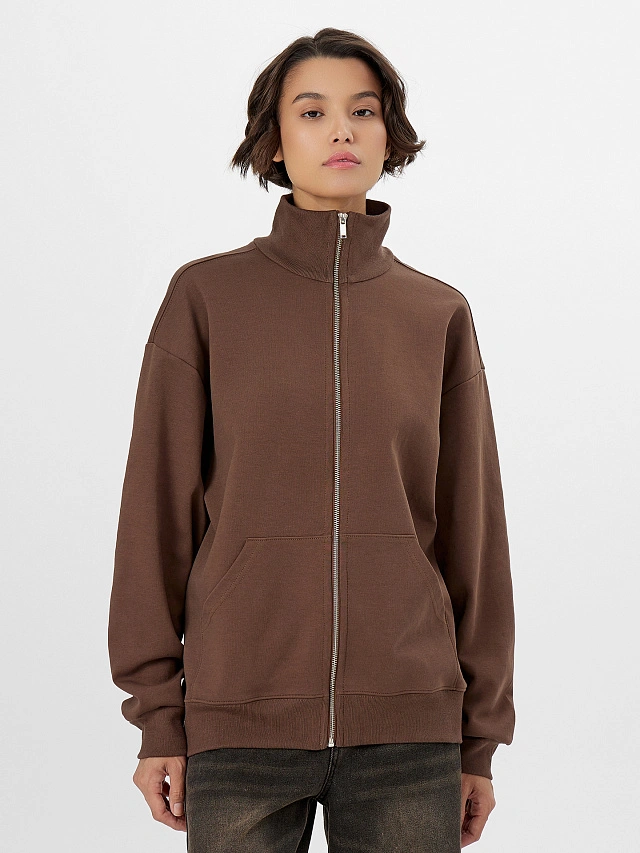 Эта удобная женская коричневая толстовка на молнии создана для повседневной носки. Модель свободного кроя с застежкой-молнией подарит комфорт в любой ситуации.