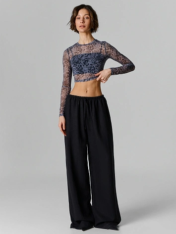 Укороченный лонгслив в стильном сером оттенке с леопардовым принтом — выбор для смелых и уверенных в себе. Модель из полупрозрачной сетки создаёт воздушный образ, а прилегающий силуэт мягко подчёркивает фигуру. Укороченная длина делает его идеальным для создания многослойных комплектов или вечерних выходов.
