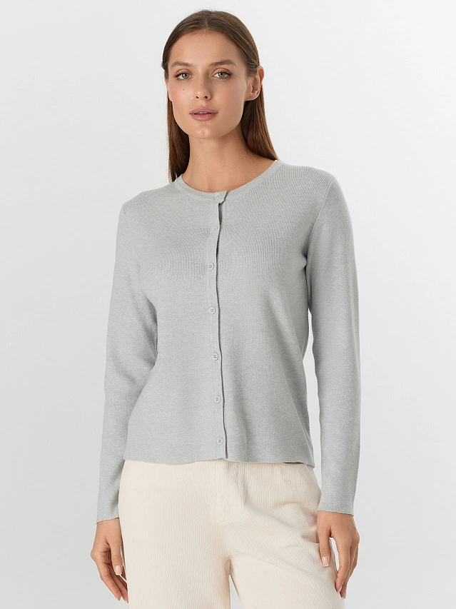 Серый кардиган на пуговицах — идеальный способ добавить уют и элегантность в повседневный образ. Модель с круглым вырезом и классической застежкой на пуговицах легко сочетается с любой базой. Мягкая смесь вискозы и нейлона обеспечивает комфорт: материал приятен к телу, хорошо сохраняет тепло и при этом отличается легкостью, сохраняя форму после стирок.