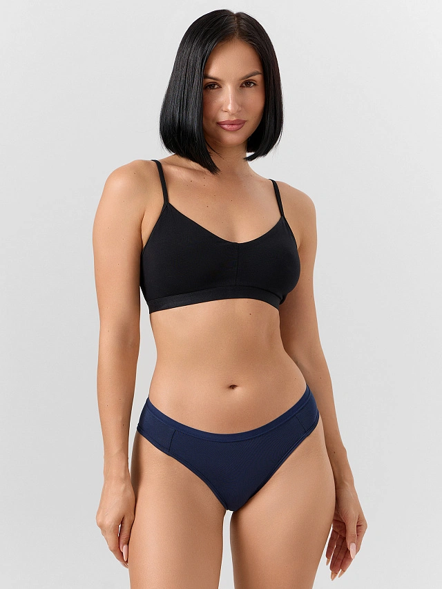 Синие трусы-бразилиана — идеальный выбор для повседневной носки. Модель с заниженной линией талии выполнена из натурального хлопка с добавлением эластана, что обеспечивает мягкое облегание и комфорт в течение всего дня. Тонкая эластичная тесьма по верхнему срезу мягко фиксирует трусики, не оставляя следов на коже, а аккуратная обработка по ногам гарантирует удобную посадку.