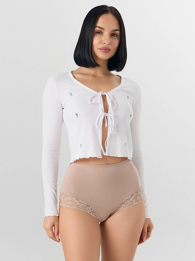 Трусы женские макси бежевые с кружевными деталями